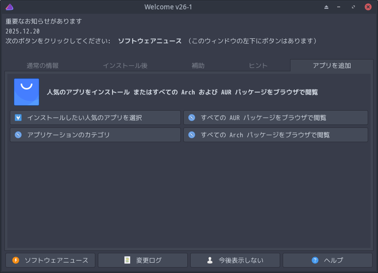 EndeavourOS - 2026.01.12 - XFCE - パッケージ管理