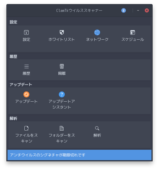 アンチウィルスソフトとして、「ClamTk」を使用します。
