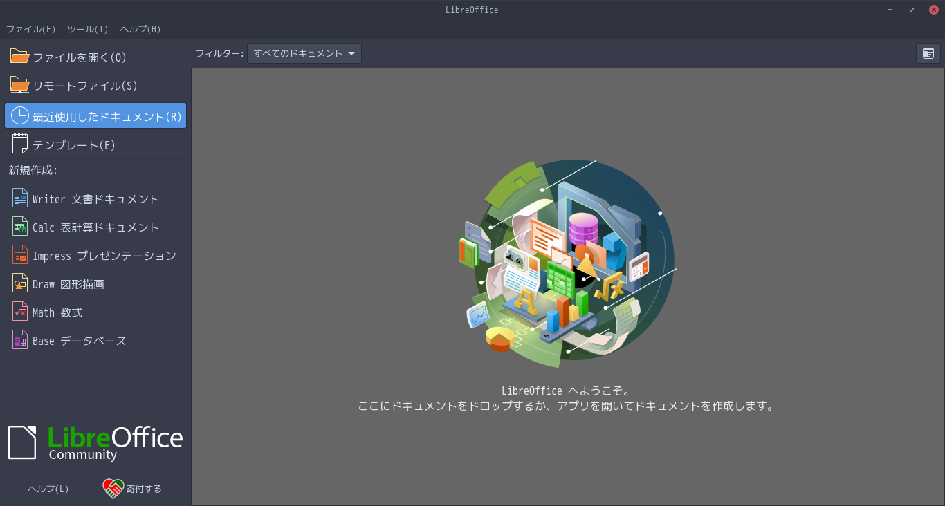 「スタート」→「オフィス」→「LibreOffice Start Center」