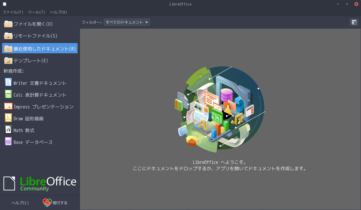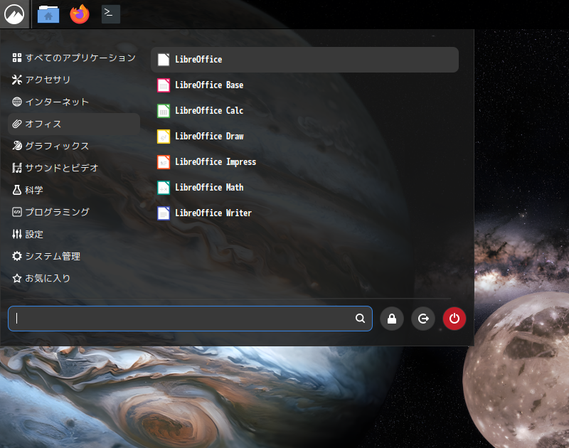 オフィススイートとして、「LibreOffice」を使用します。