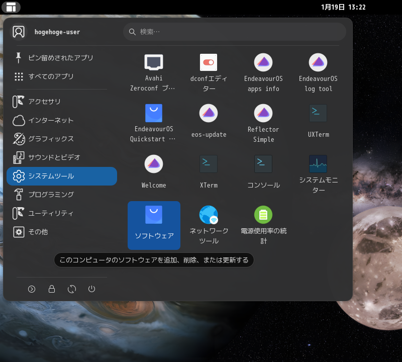 「EndeavourOS」には、グラフィカルな、パッケージ管理のフロントエンドとしては、一応、「Welcome」が使えるのですが・・・。