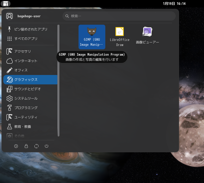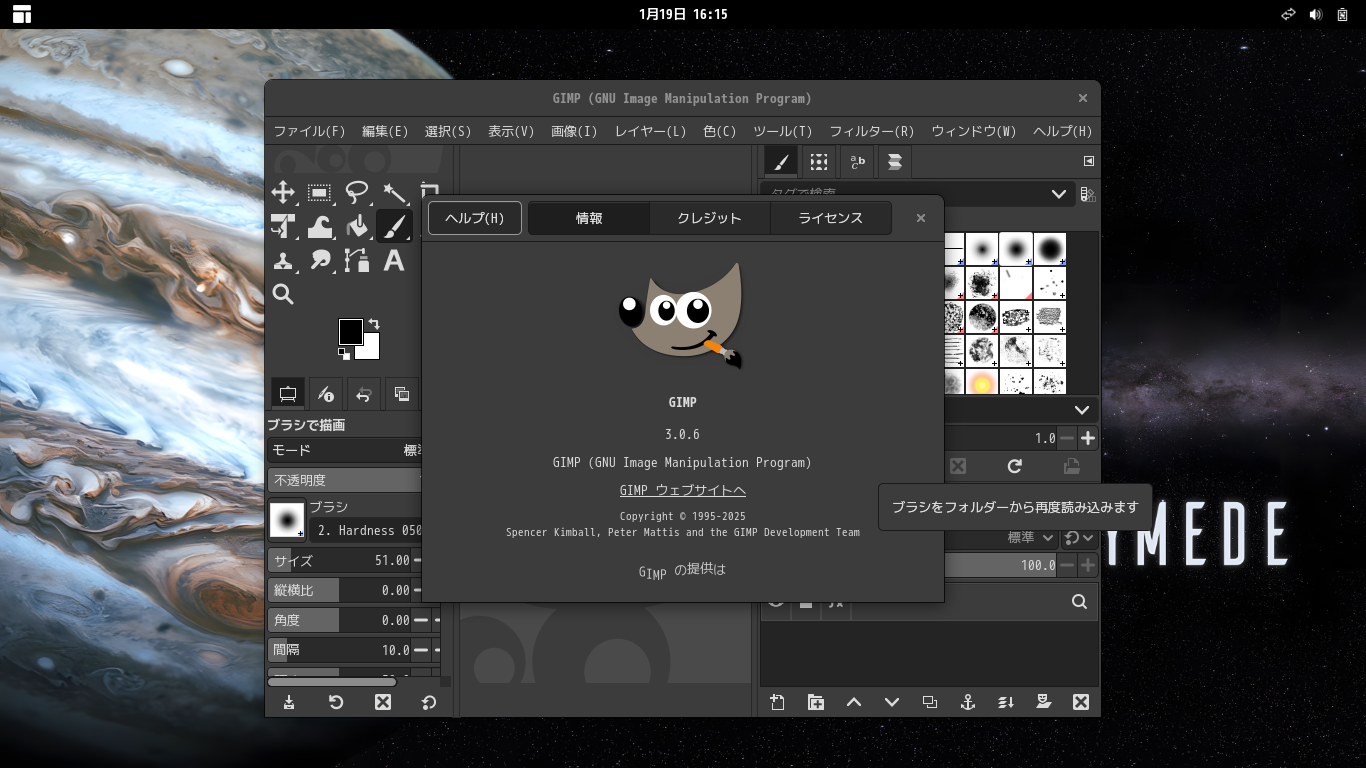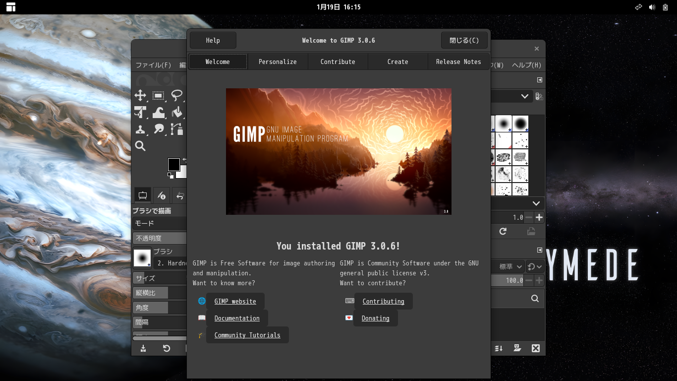 1. 概要 画像編集ソフトとして、「GIMP」を使用します。 2. インストール 「root」ユーザ権限で。 yes | pacman -S gimp 3. 起動 「スタート」→「グラフィックス」→「GIMP」