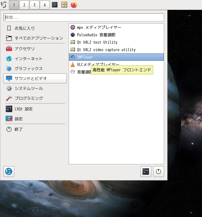 1. 概要 マルチメディアプレイヤーとして、「SMPlayer」を使用します。 2. インストール 「root」ユーザ権限で。 yes | pacman -S smplayer 3. 起動 「スタート」→「サウンドとビデオ」→「SMPlayer」