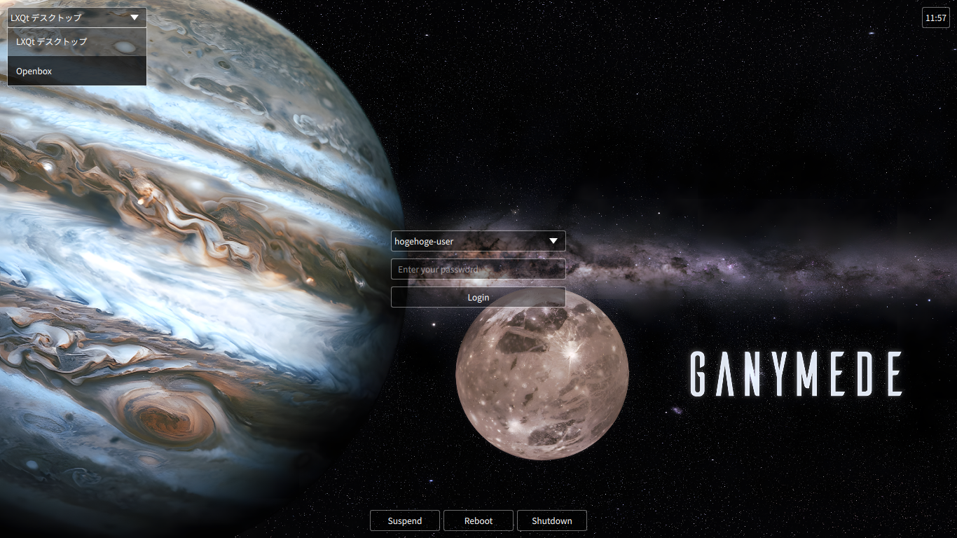 1. インストール インストールに関しては、「EndeavourOS - 2026.01.12 - 共通事項」をご参照ください。 「Openbox」は、明示的に選択肢はありません。 「LXQt」もしくは「LXDE」をインストールすると、漏れなくついてきます。 2. セッション選択 ログイン画面で「Openbox」を選択すれば、「Openbox」の環境へログインできます。