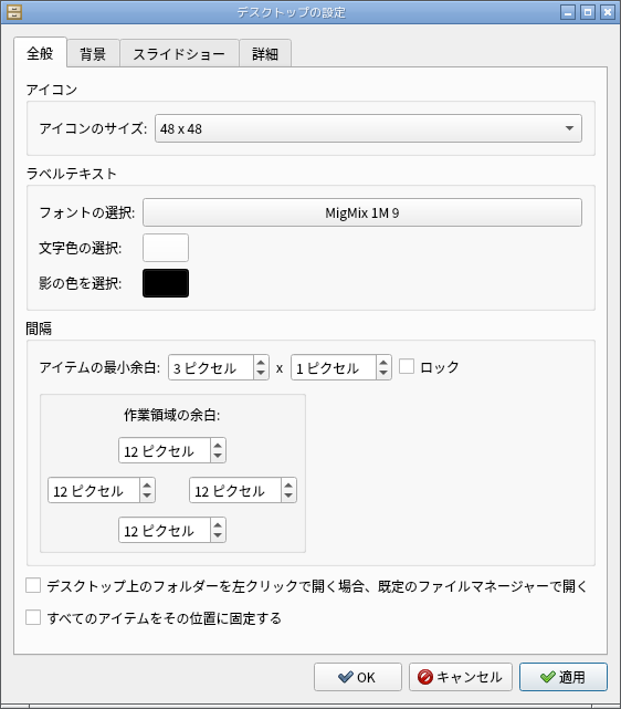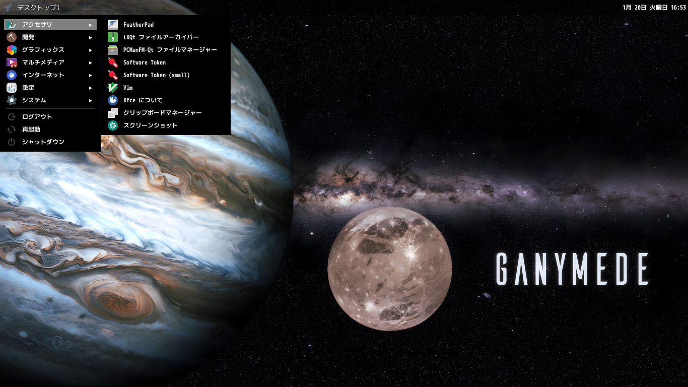 「パネル」「メニュー」は、「tint2」「jgmenu」を使用します。