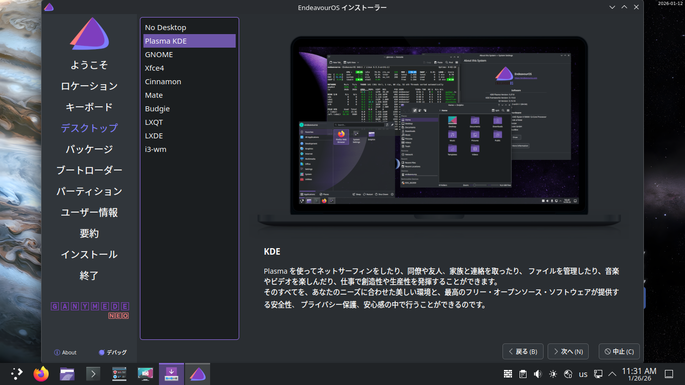 EndeavourOS - 2026.01.12 - KDE - インストール
