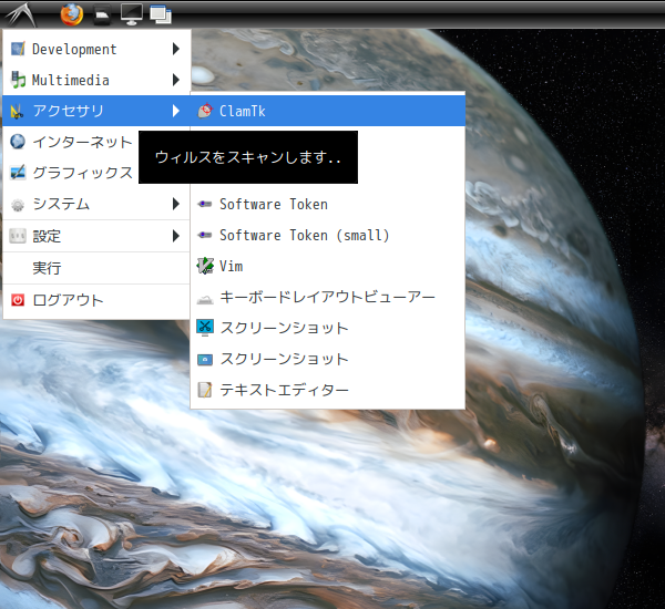 1. 概要 アンチウィルスソフトとして、「ClamTk」を使用します。 2. インストール 「root」ユーザ権限で。 pacman -S clamtk 2回、Enter を入力します。 3. 起動 「スタート」→「ユーティリティ」→「ClamTk」