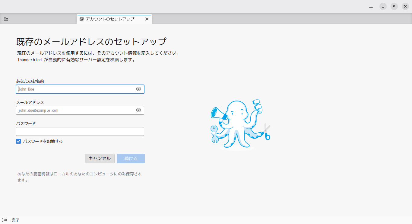 1. 概要 デフォルトでは、メールクライアントは、インストールされていません。 「Thunderbird」をインストールして、使用します。 「メールアアドレスのセットアップ」他、操作については、「メール クライアント ソフト - Thunderbird」をご参照ください。 2. インストール 「root」ユーザ権限で。 yes | pacman -S thunderbird-i18n-ja 3. 起動 「スタート」→「インターネット」→「Thunderbird」