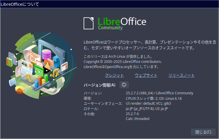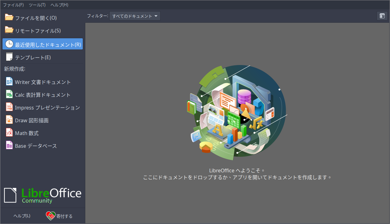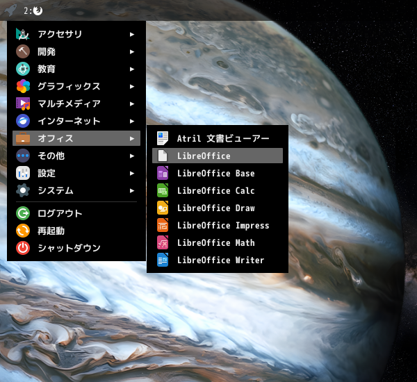 「LibreOffice」のみ、「Welcome」画面よりインストールできますが、後で、日本語化パッケージをインストールする必要があるので、はなから「pacman」でインストールします。