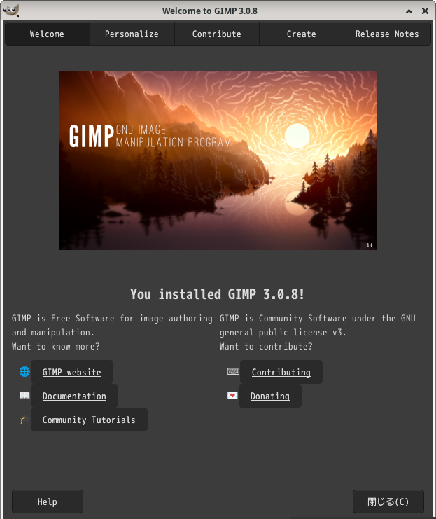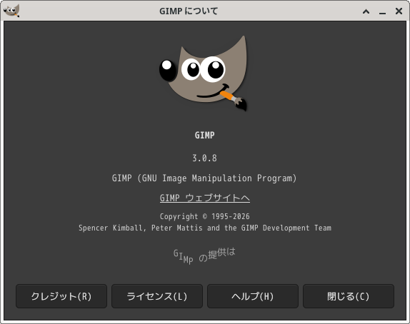 1. 概要 画像編集ソフトとして、「GIMP」を使用します。 2. インストール 「root」ユーザ権限で。 yes | pacman -S gimp 3. 起動 「スタート」→「グラフィックス」→「GIMP」