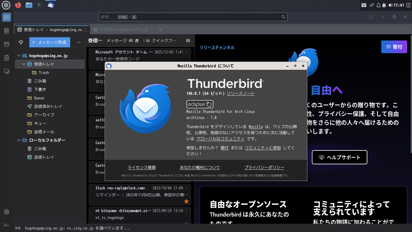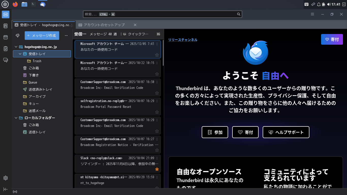 EndeavourOS - 2026.03.06 - BUDGIE - メールクライアント Mail