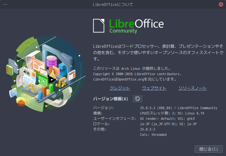 オフィススイートとして、「LibreOffice」を使用します。