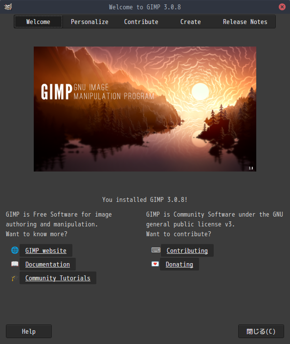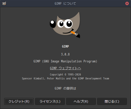 1. 概要 画像編集ソフトとして、「GIMP」を使用します。 2. インストール 「root」ユーザ権限で。 yes | pacman -S gimp 3. 起動 「スタート」→「グラフィックス」→「GIMP」