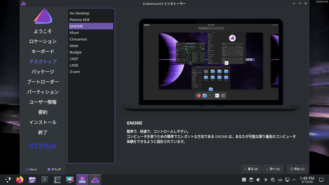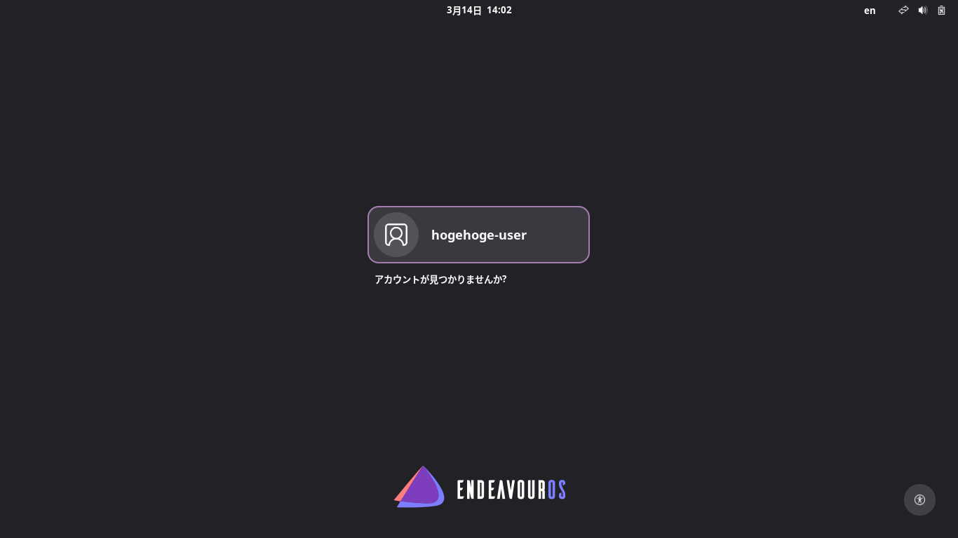 EndeavourOS - 2026.03.06 - GNOME - インストール