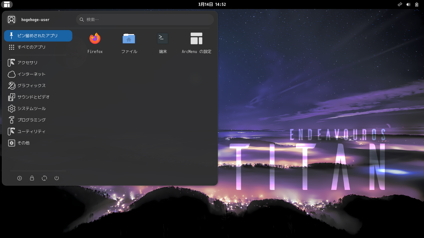 メニューとして、「Arc Menu」をインストールして、「Enterprise」スタイルを使用します。