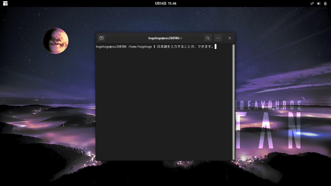 再ログインして、日本語が入力できることを確認しました。