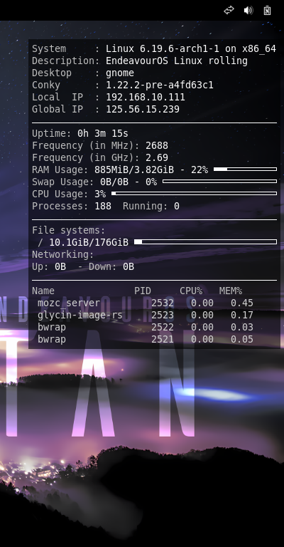 yes | pacman -S conky curl git