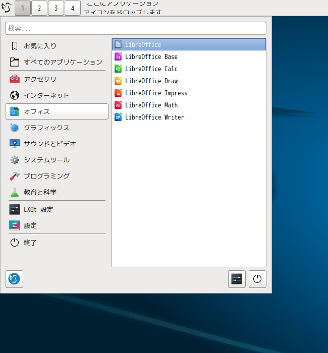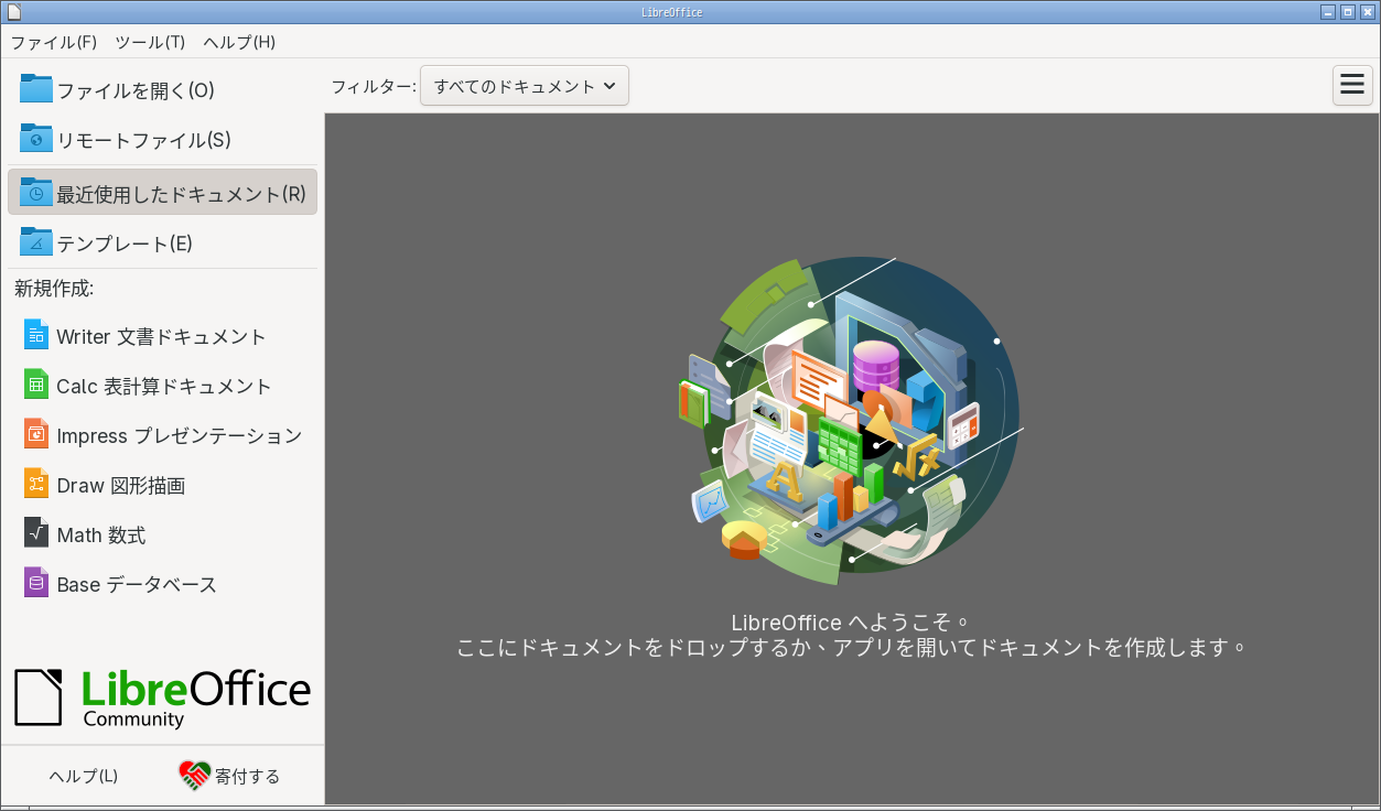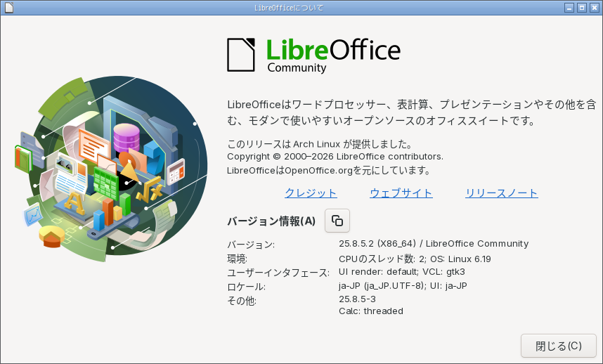 「LibreOffice」は、「Welcome」画面よりインストールできますが、後で、日本語化パッケージをインストールする必要があるので、はなから「pacman」でインストールします。