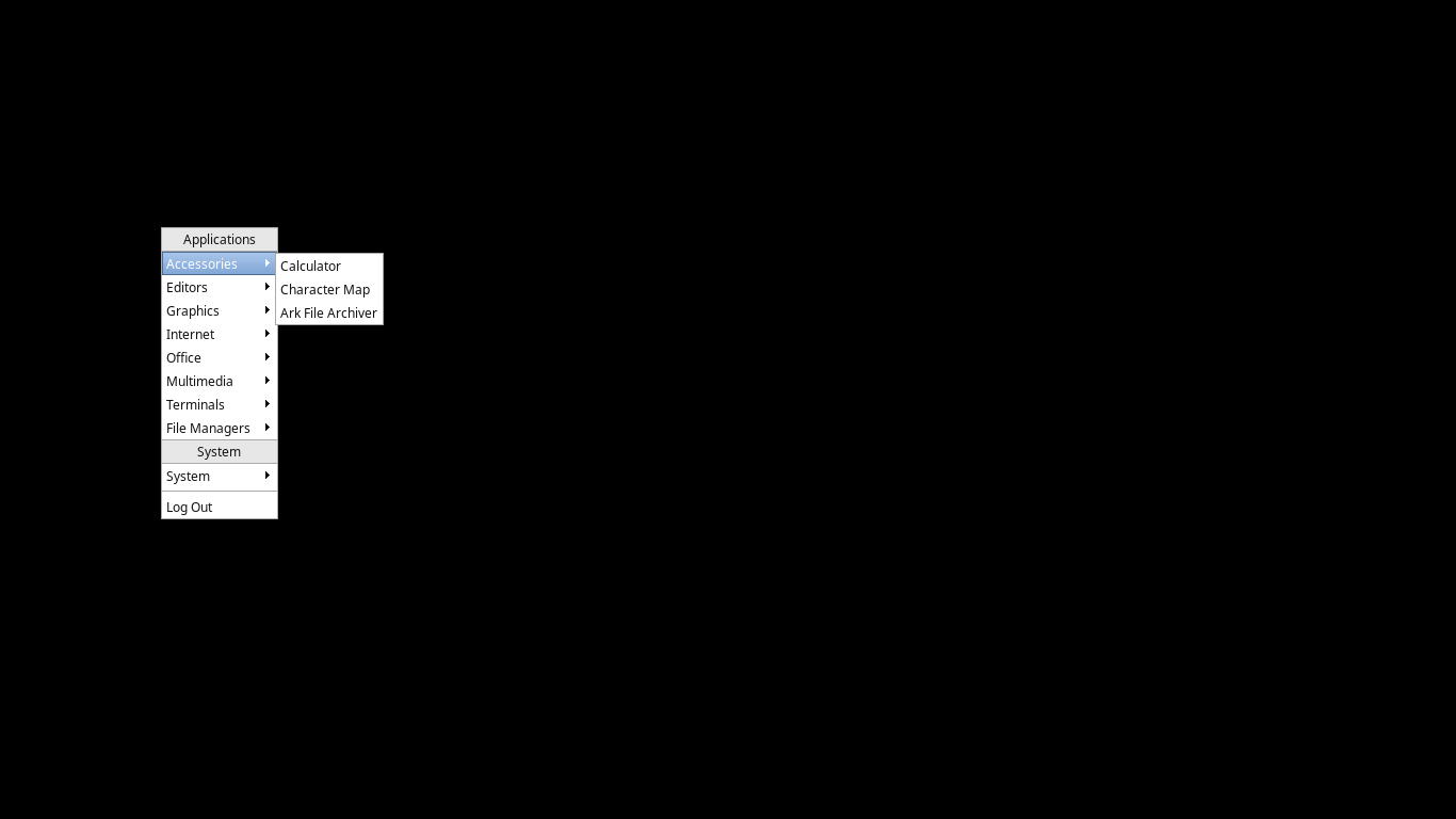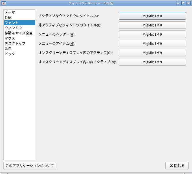 「パネル」「メニュー」は、「tint2」「jgmenu」を使用します。