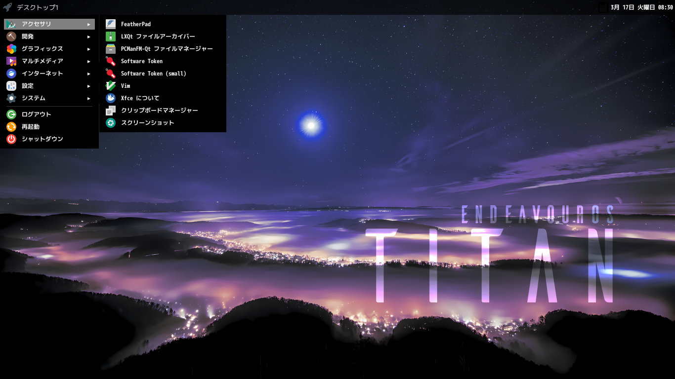 「EndeavourOS 2026.03.06」の共通的な操作については、「EndeavourOS - 2026.03.06 - 共通事項」をご参照ください。
