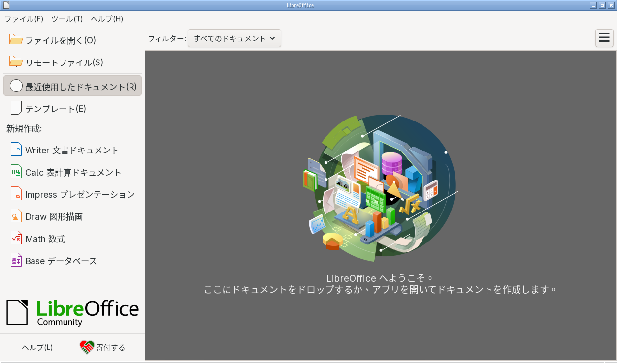 オフィススイートとして、「LibreOffice」を使用します。