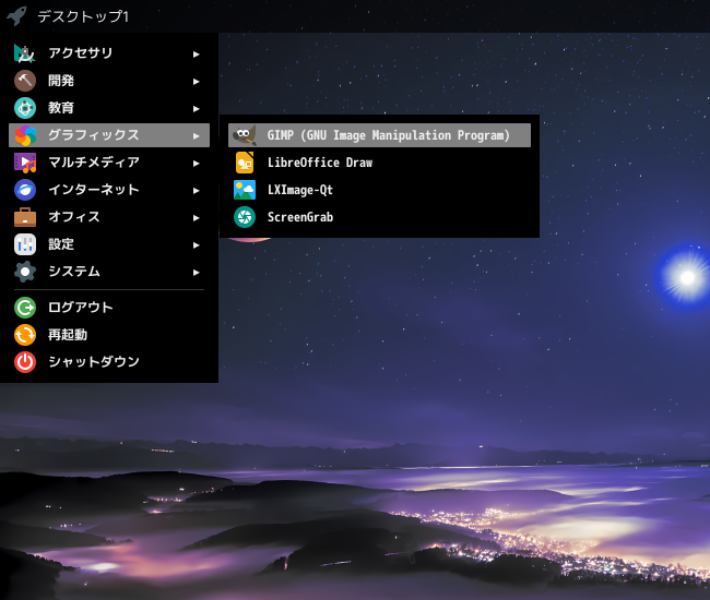 1. 概要 画像編集ソフトとして、「GIMP」を使用します。 2. インストール 「root」ユーザ権限で。 yes | pacman -S gimp 3. 起動 「スタート」→「グラフィックス」→「GIMP」