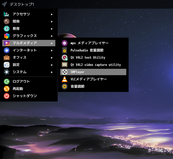 1. 概要 マルチメディアプレイヤーとして、「SMPlayer」を使用します。 2. インストール 「root」ユーザ権限で。 yes | pacman -S smplayer 3. 起動 「スタート」→「マルチメディア」→「SMPlayer」