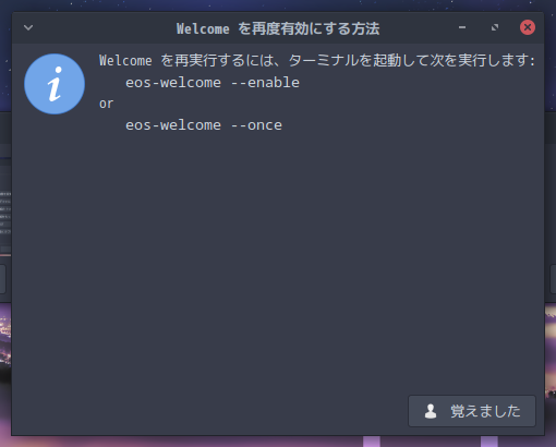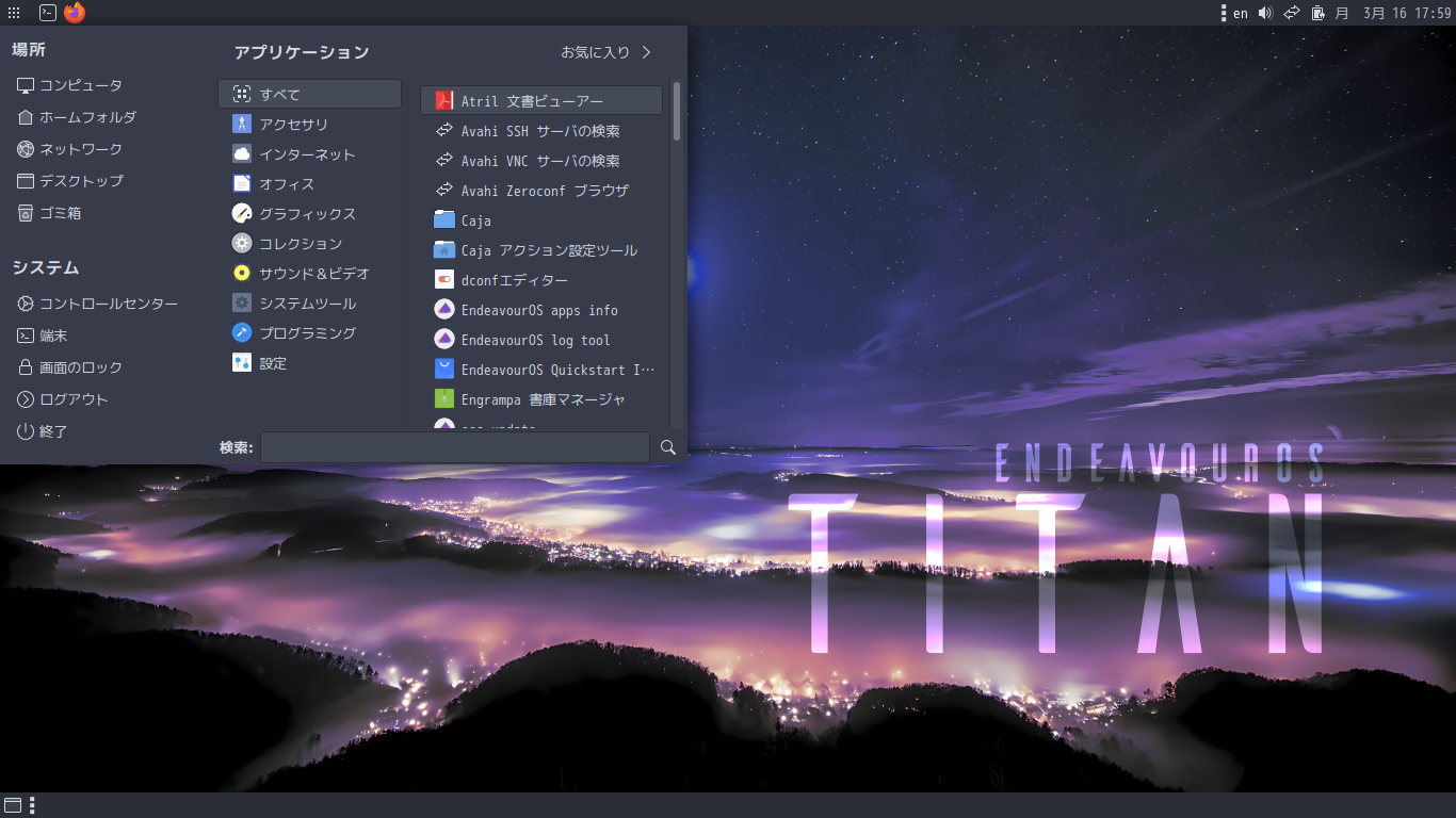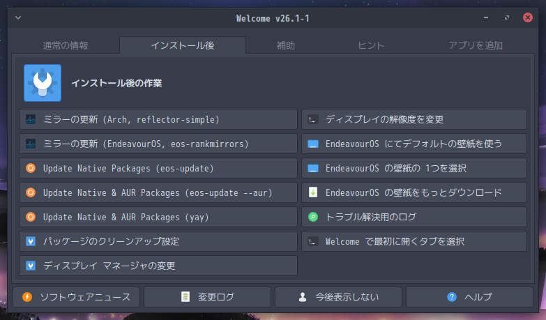 「EndeavourOS 2026.03.06」の共通的な操作に関しては、「EndeavourOS - 2026.03.06 - 共通事項」をご参照ください。