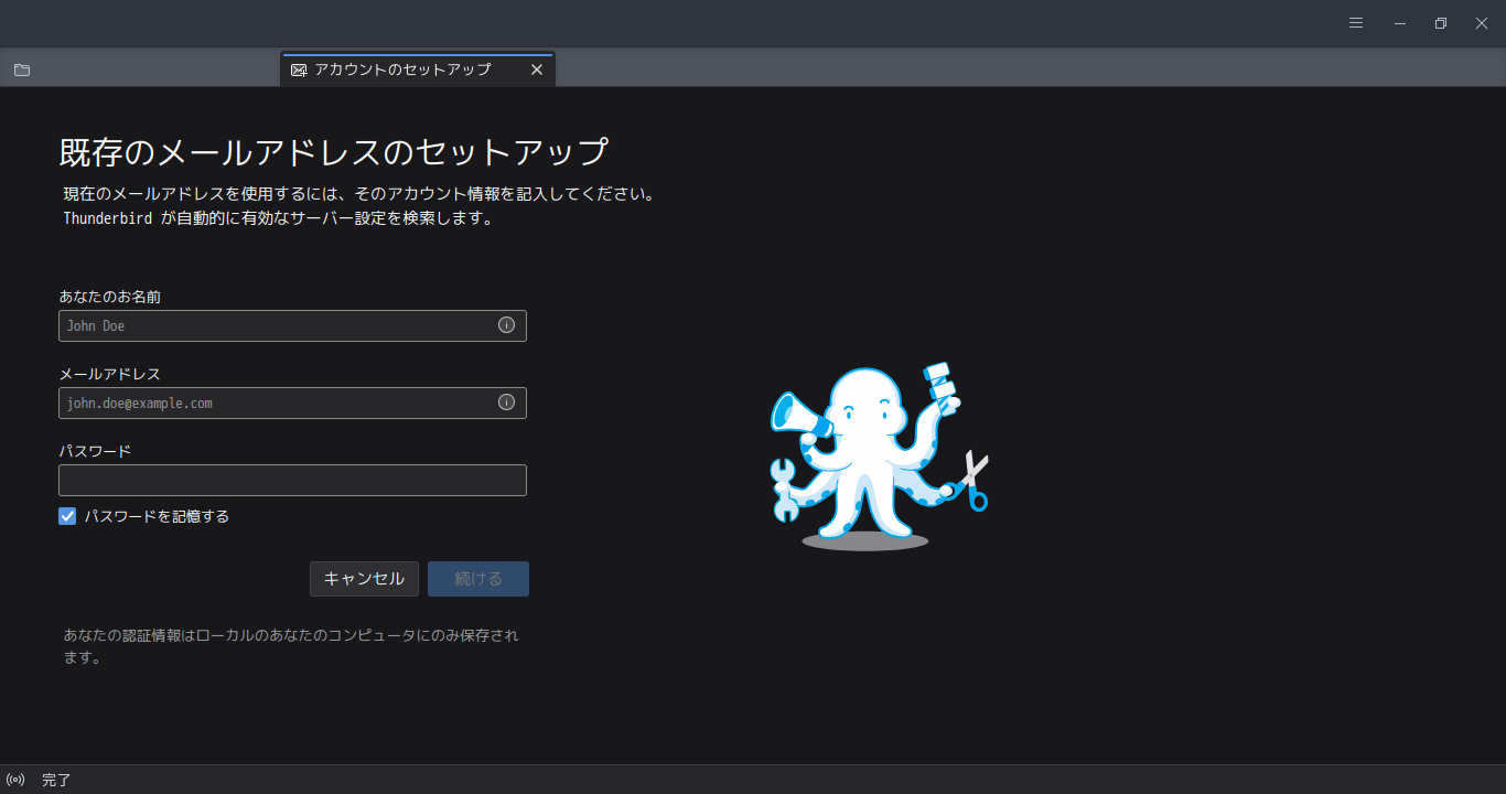 初回起動時は、「メールアアドレスのセットアップ」から始まります。