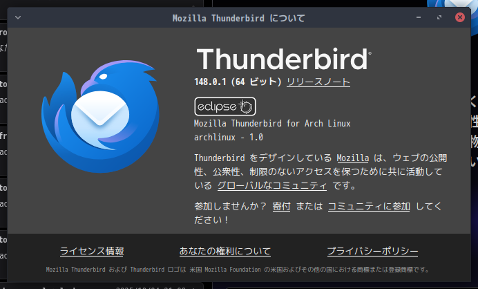 EndeavourOS - 2026.03.06 - MATE - メールクライアント Thunderbird