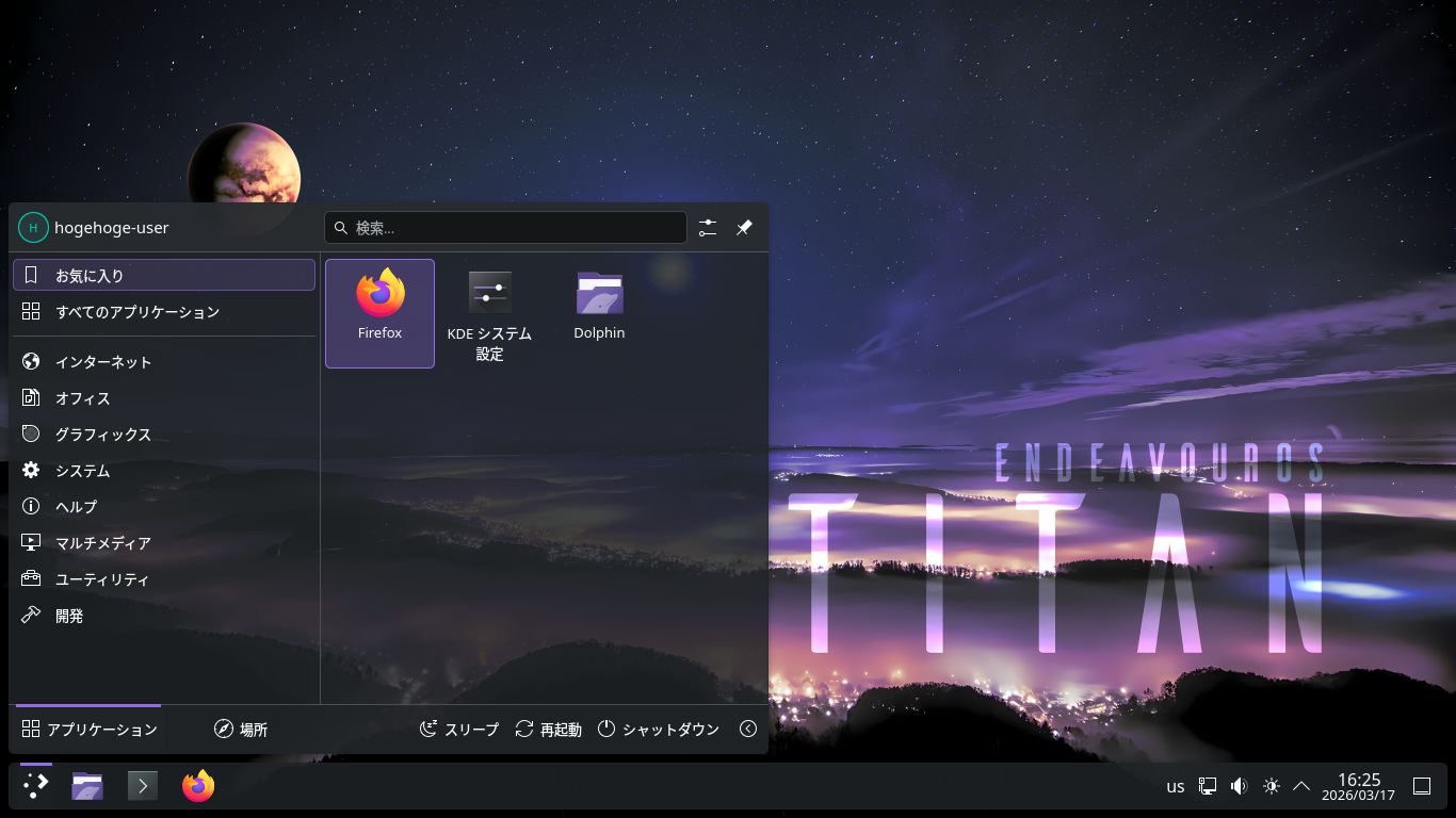 「KDE」の居通的な操作に関しては、「KDE - 共通事項」をご参照ください。