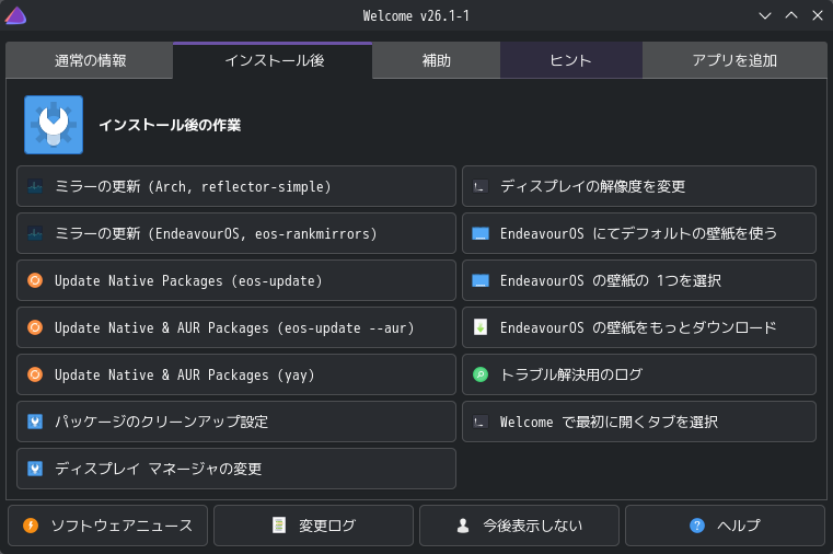 「MigMix」のインストールに関しては、「EndeavourOS - 2026.03.06 - 共通事項」をご参照ください。