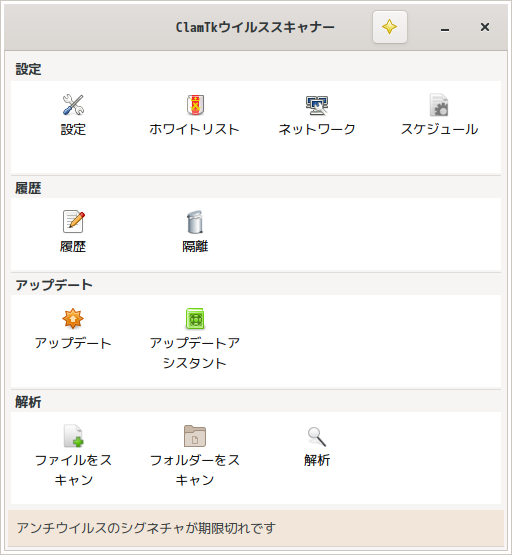 アンチウィルスソフトとして、「ClamTk」を使用します。