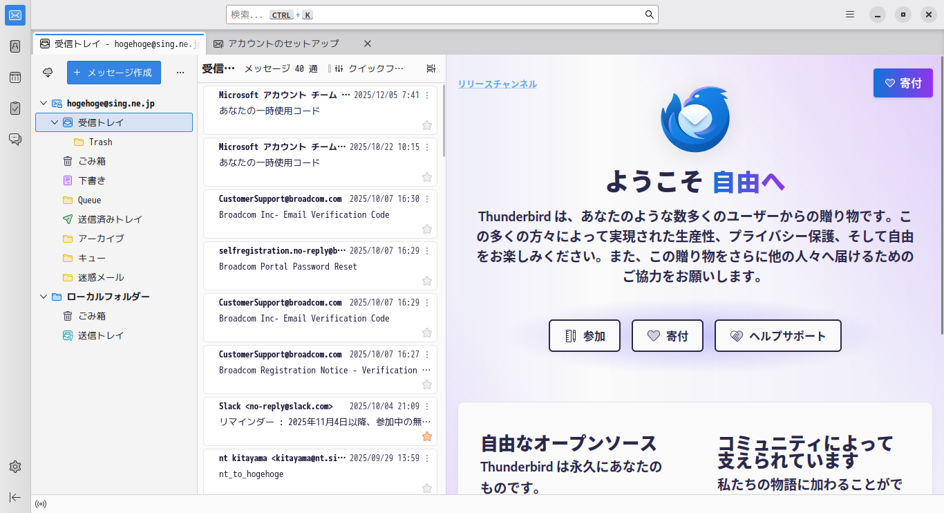EndeavourOS - 2026.03.06 - LXDE - メールクライアント Thunderbird