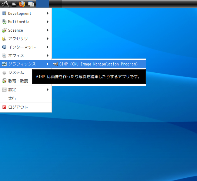 「スタート」→「グラフィックス」→「GIMP」