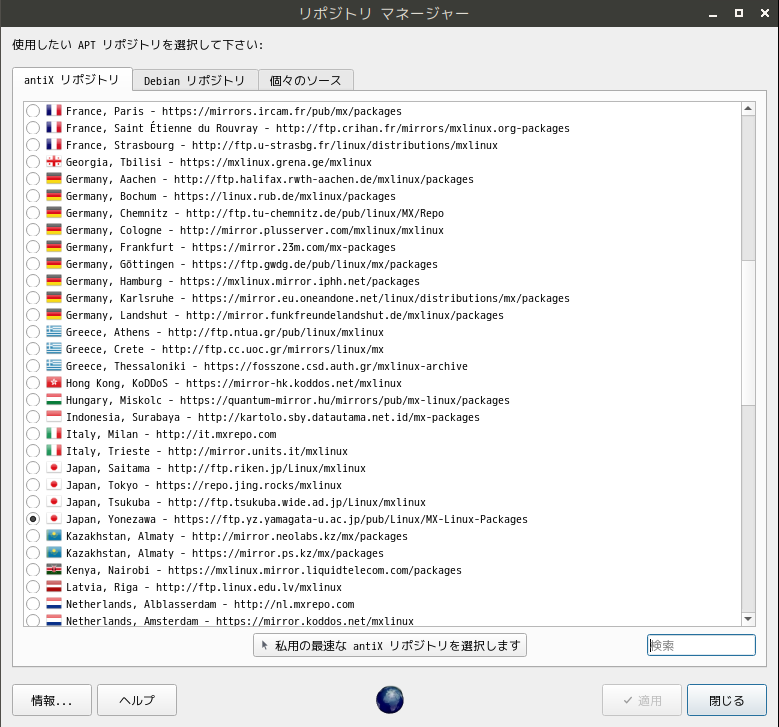バージョン「19.4」から、「22」までは、インストール時に、日本語を選択していると、日本のサイトが、リポジトリとして選択されていました。