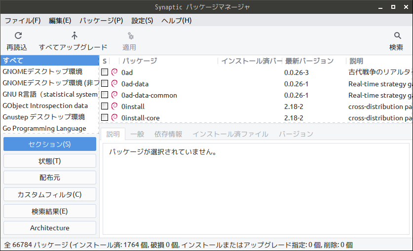 操作方法等は、「Linux - 共通事項 - パッケージ管理フロントエンド」をご参照ください。