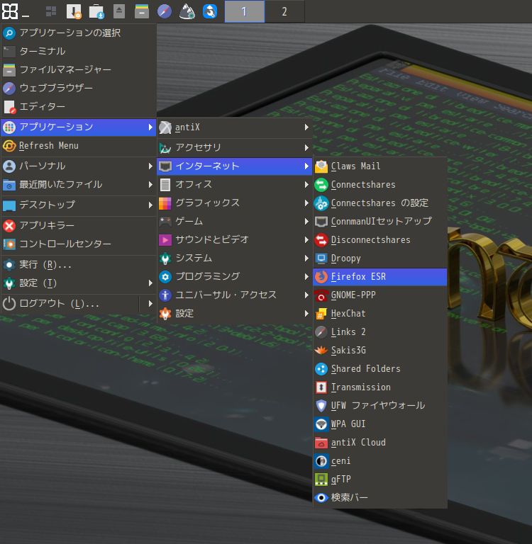 1. 概要 ブラウザとして、「Firefox」が、デフォルトでインストールされています。 2. 起動 「スタート」→「アプリケーション」→「インターネット」→「Firefox」