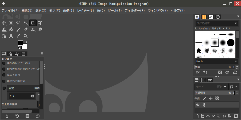 「Menu」→「アプリケーション」→「グラフィックス」→「GIMP」  (メニューから起動できない時があるようです、端末から「gimp」で起動できます)