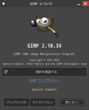 「antiX 23.2 Fluxbox」-「GIMP」「バージョン情報」