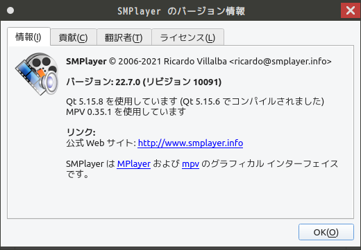 マルチメディアプレイヤーとして、「SMPlayer」をインストールして使用します。