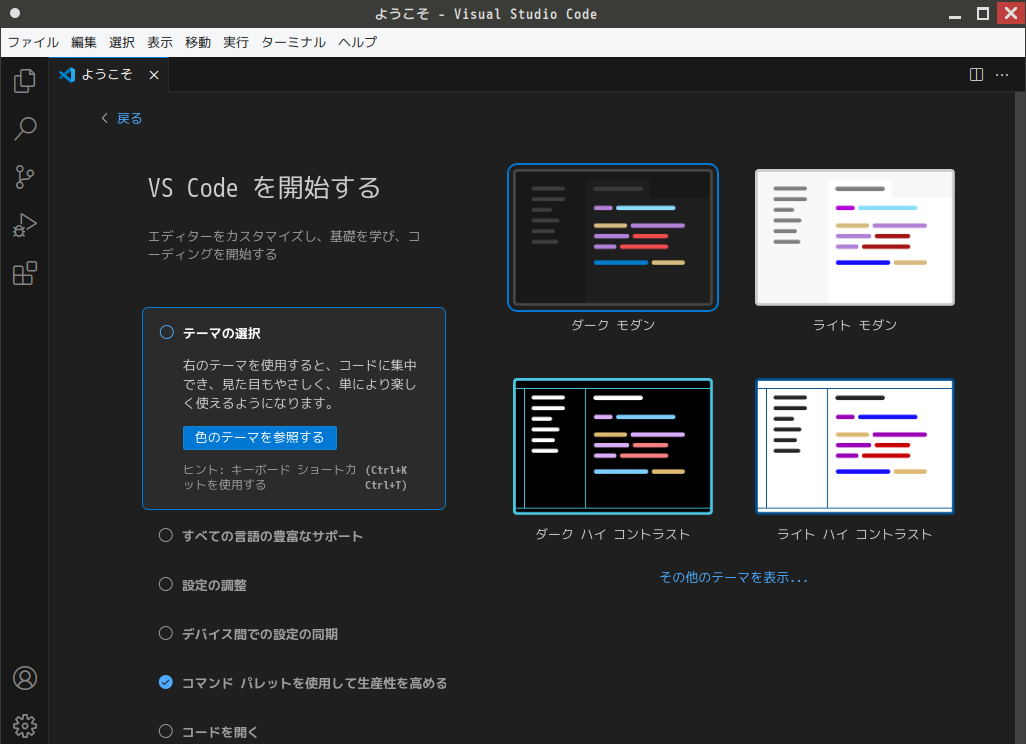 1. 概要 開発環境として、「Visual Studio Code」を使用します。 2. インストール パッケージインストーラで、「vscode」を検索してインストールします。 3. 起動 「Menu」→「アプリケーション」→「プログラミング」→ 「Visual Studio Code」