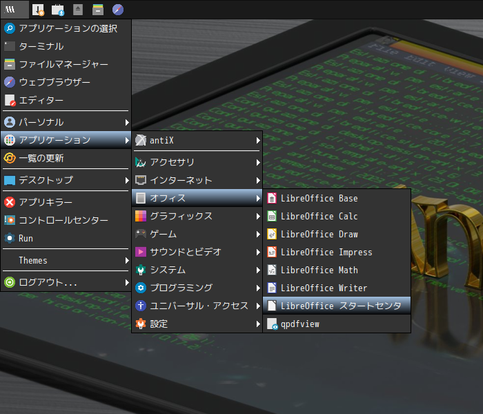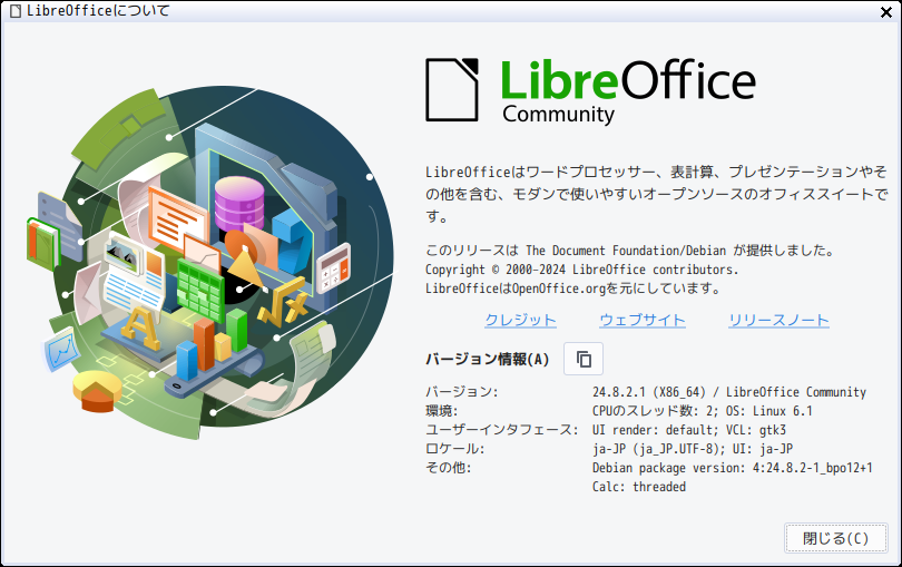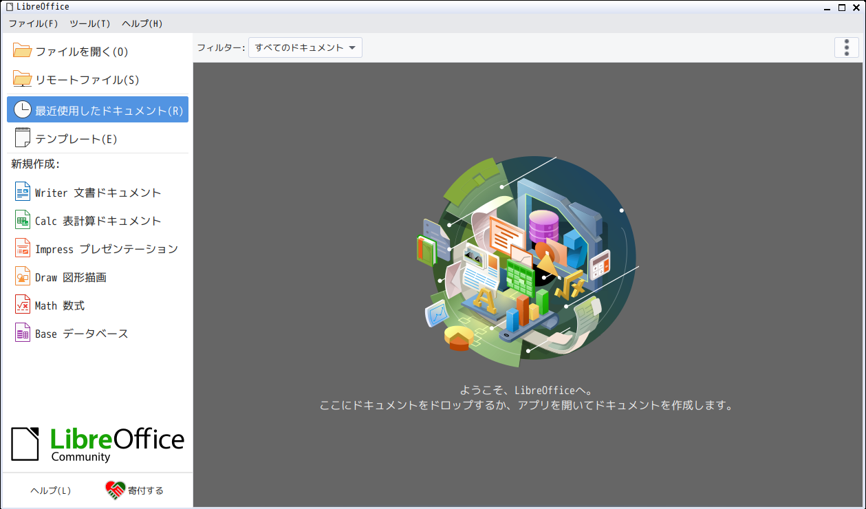 操作方法等については「オフィススィート LibreOffice」をご参照ください。