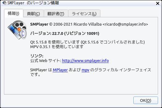 マルチメディアプレイヤーとして、「SMPlayer」をインストールして使用します。