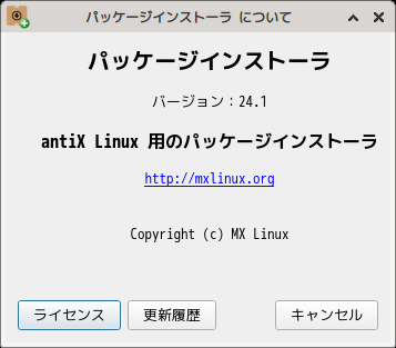 「CopyRight(C)MX Linux」と書いてありますので、「MX パッケージインストーラ」であることがわかります。