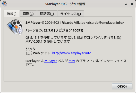 マルチメディアプレイヤーとして、「SMPlayer」をインストールして使用します。