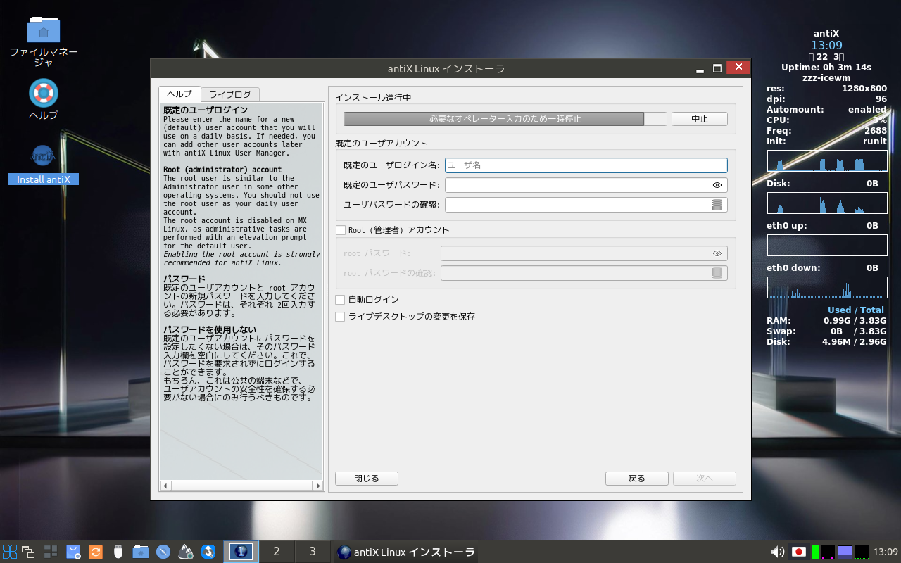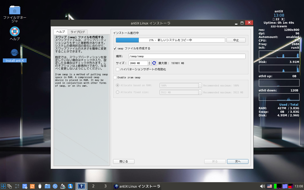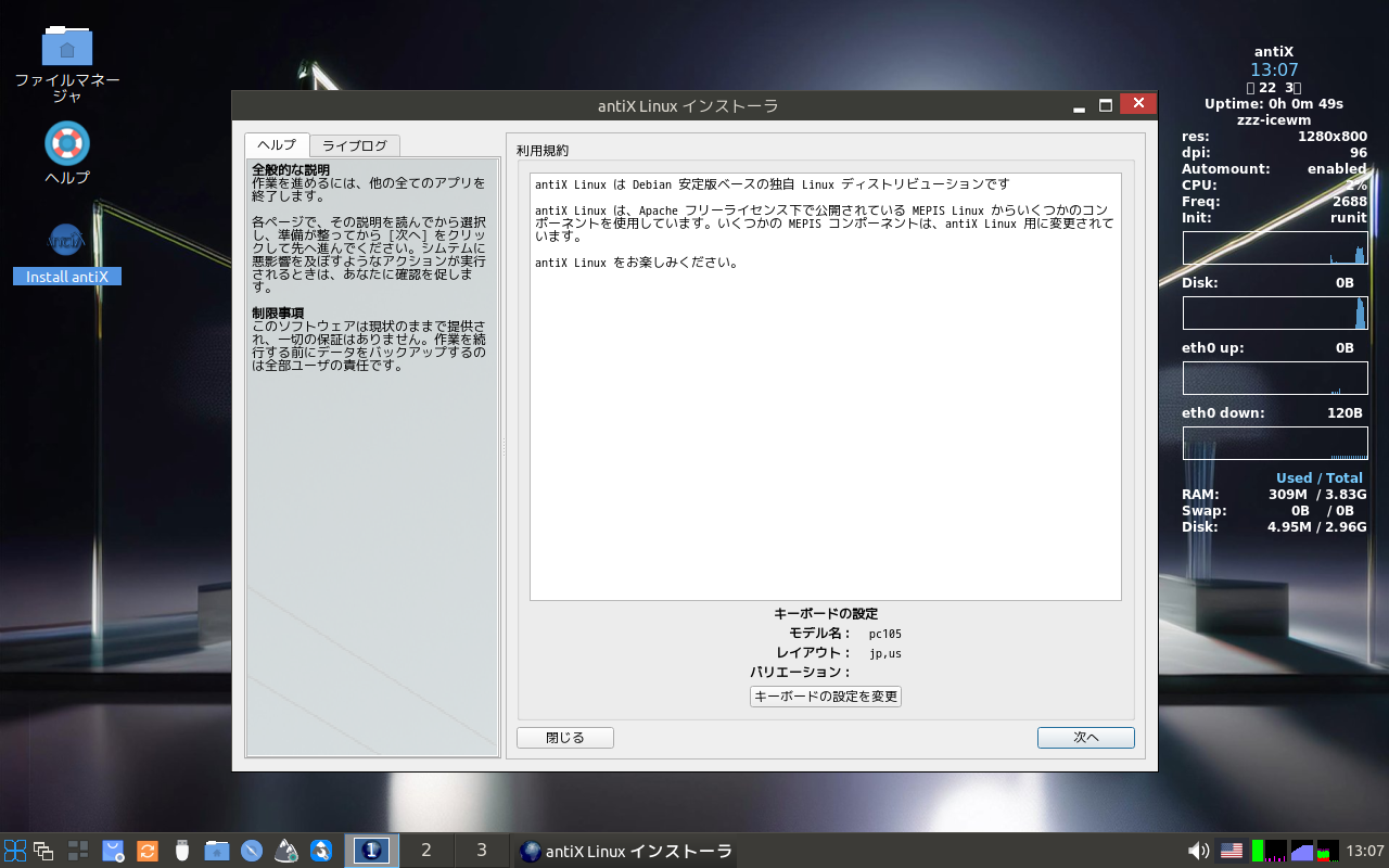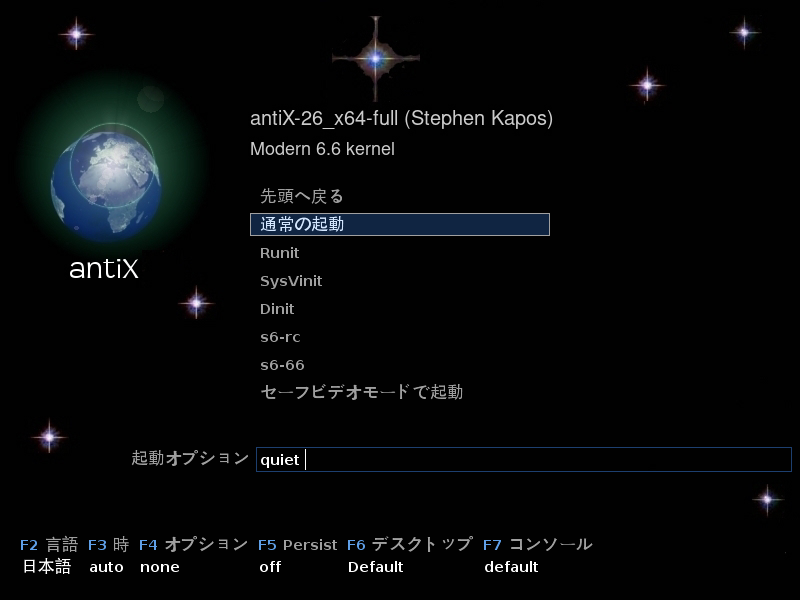 インストールメディアをセットして起動します。