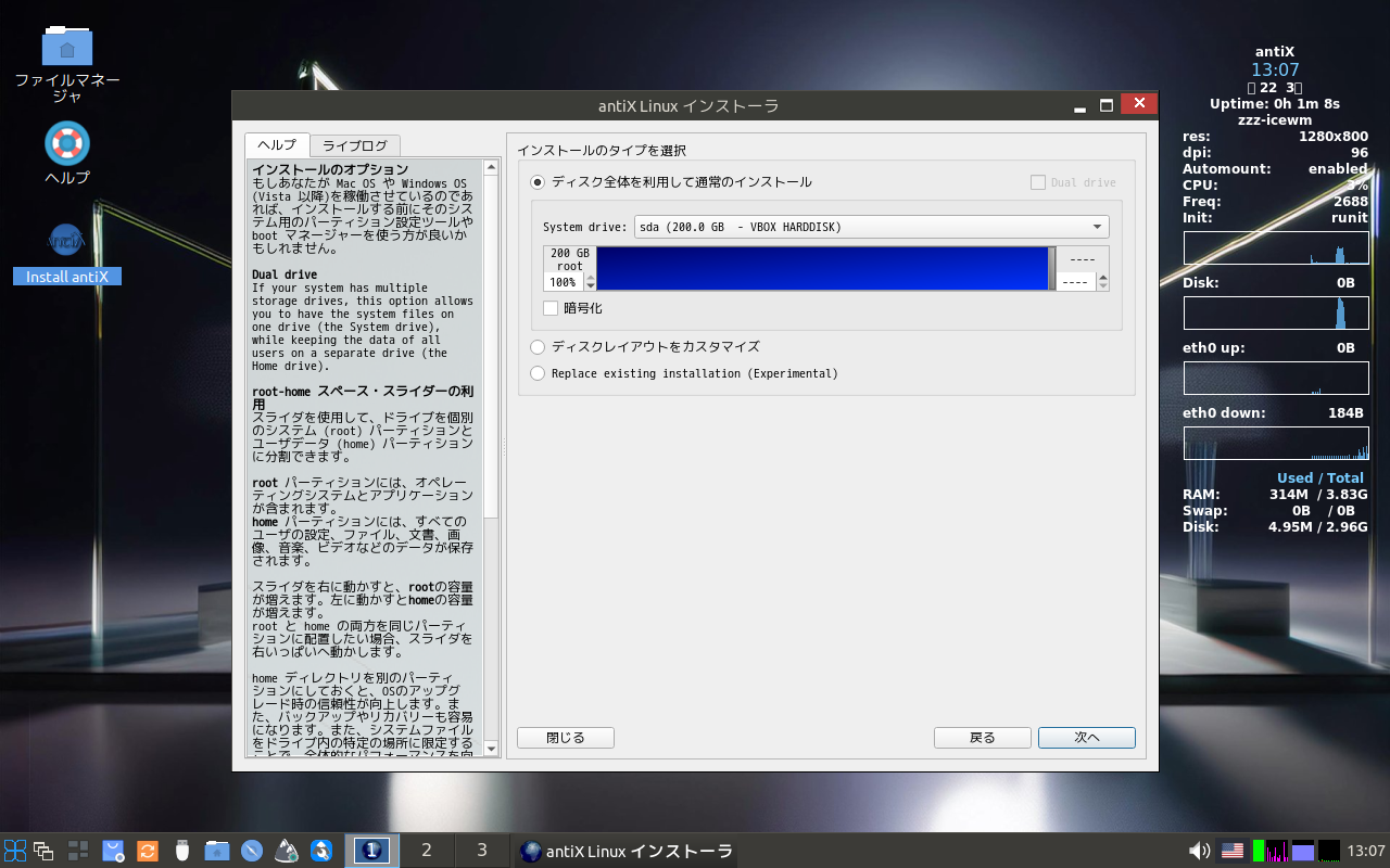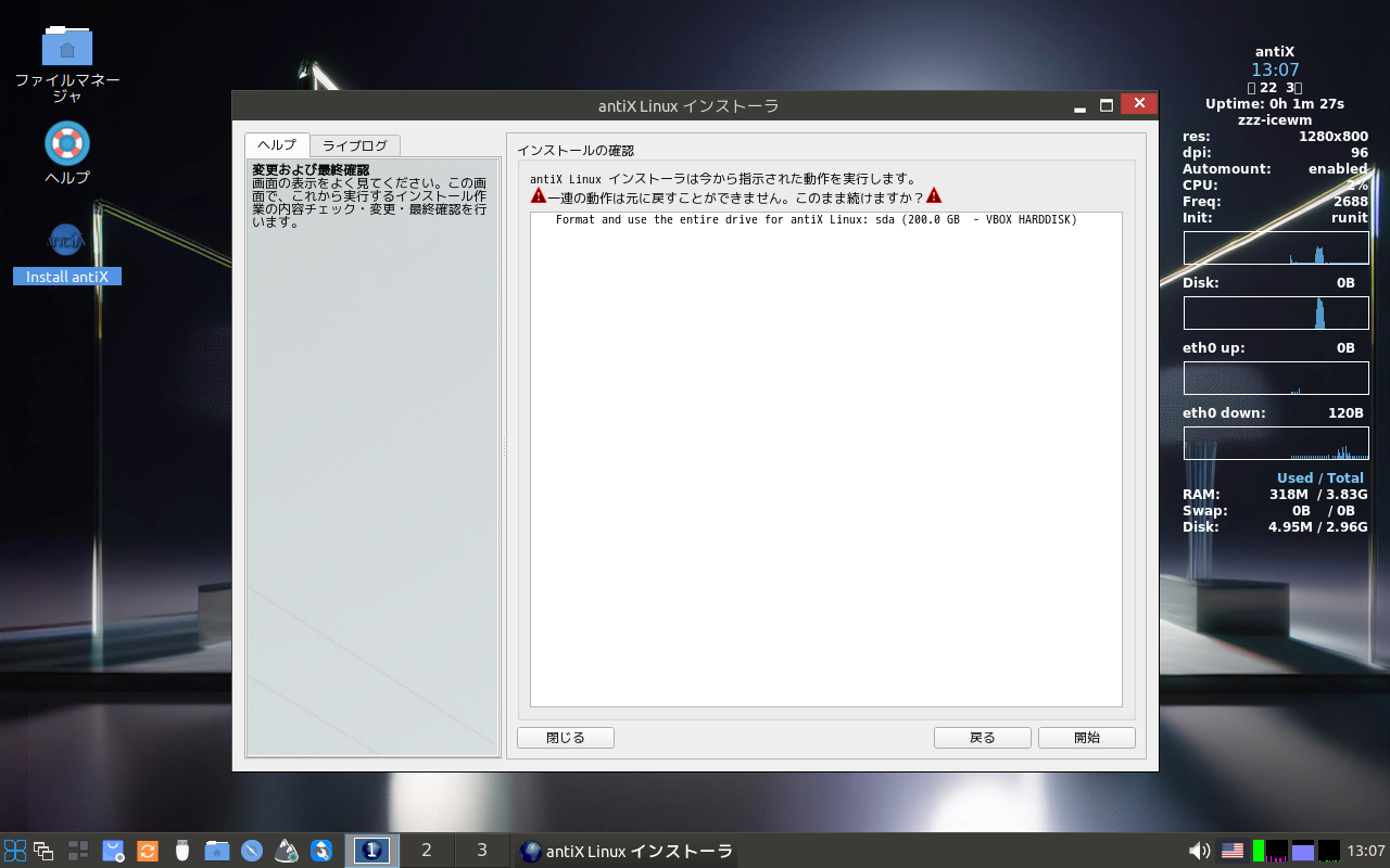 オペレーティングシステムのインストールに関しては、手順は同じですので、ここにまとめて記述します。