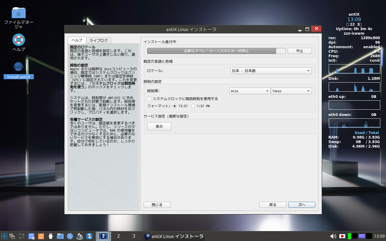 前回は、上の選択をすることで、タイムゾーン他の選択肢が消えていましたが、今回は、消えていません。
