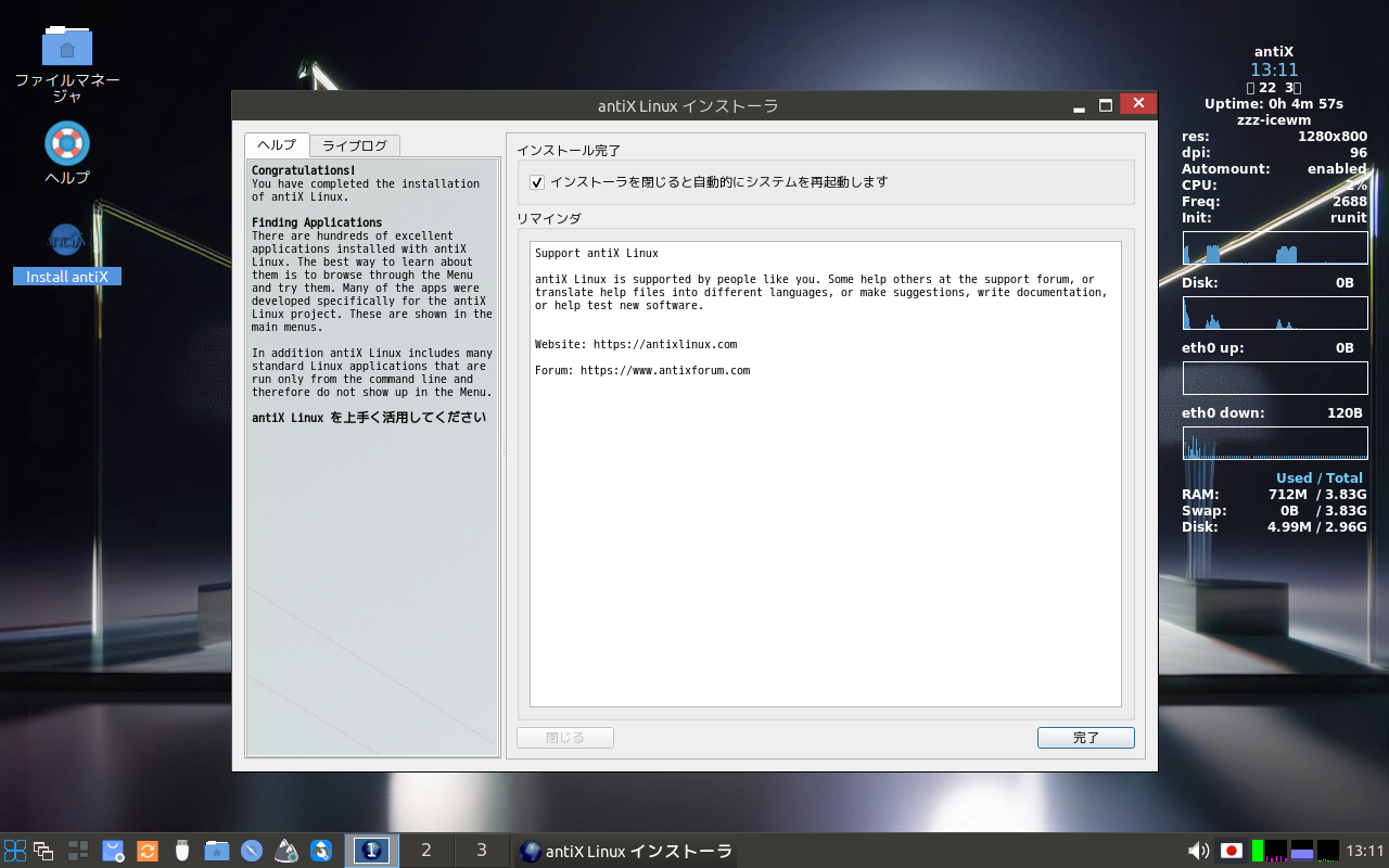 自動的に再起動します。